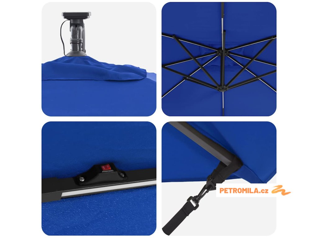 - Součásti: Obsahuje ruční kličku pro jednoduché otevírání a zavírání, naklápěcí mechanismus pro šikmé stínění a solární LED světla, suitable for co rozjasní vaše večery bez nákladů na energii.