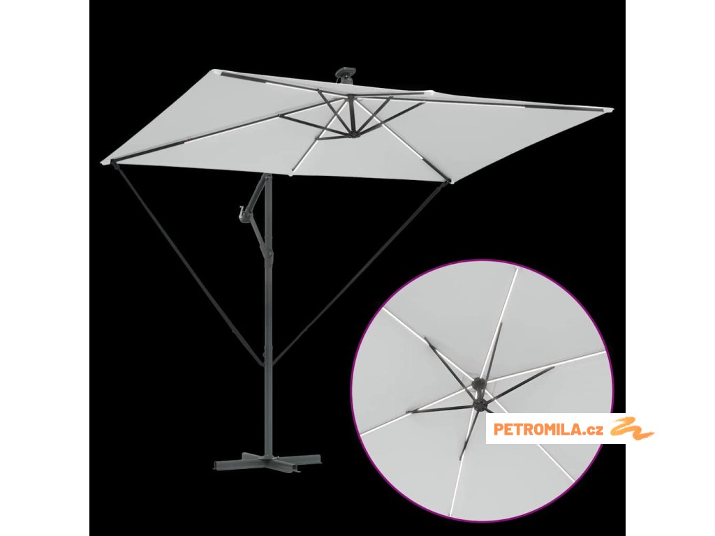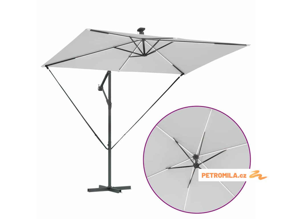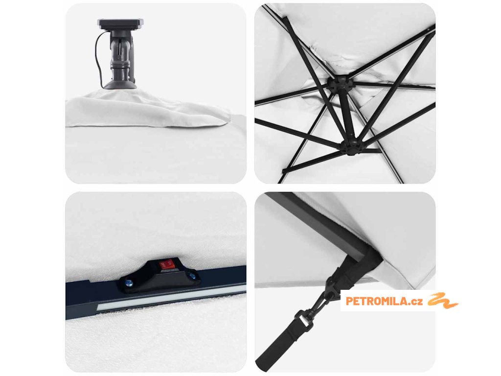 - Solární LED osvětlení: Navržen pro večerní zábavu, tento deštník zahrnuje jasné, ekologické LED osvětlení napájené solární energií. Ať už pořádáte zahradní večeři nebo noční povídání, útulná atmosféra, kterou vytváří, obohacuje jakýkoliv zážitek pod širým nebem během noci.