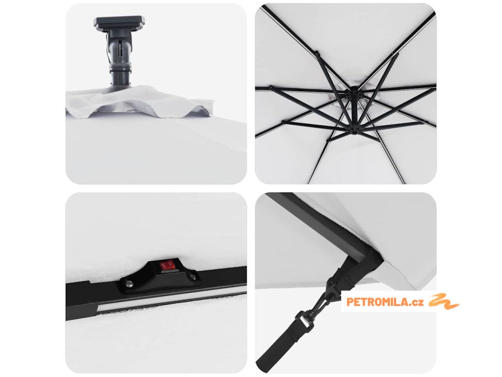 - -Friendly Solar Lighting Osvětli své večerní setkání integrovanými solárními LED světly umístěnými na každé žebro deštníku. Tyto energeticky úsporné světla nabízejí kouzelnou atmosféru, což ti umožňuje prodloužit si venkovní radovánky do noci s minimálním dopadem na životní prostředí.