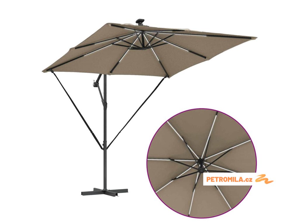 Stojanový banánový slunečník Taupe 249 x 249 x 250 cm