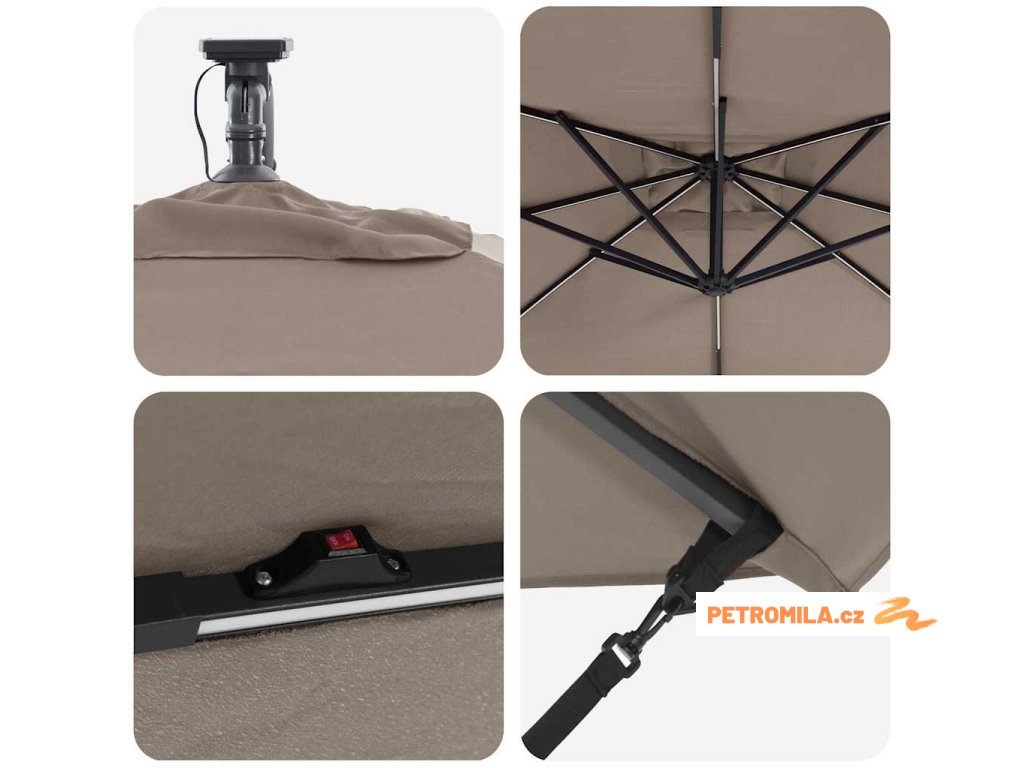 - Součásti: Obsahuje ruční kličku pro jednoduché otevírání a zavírání, naklápěcí mechanismus pro šikmé stínění a solární LED světla, suitable for co rozjasní vaše večery bez nákladů na energii.