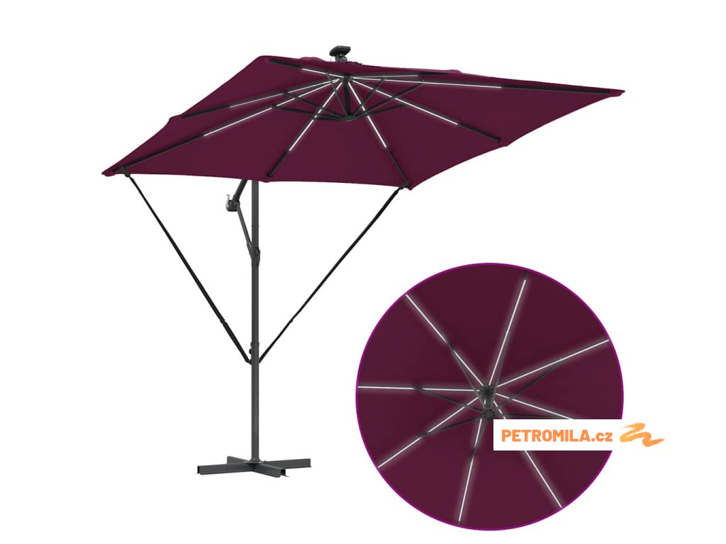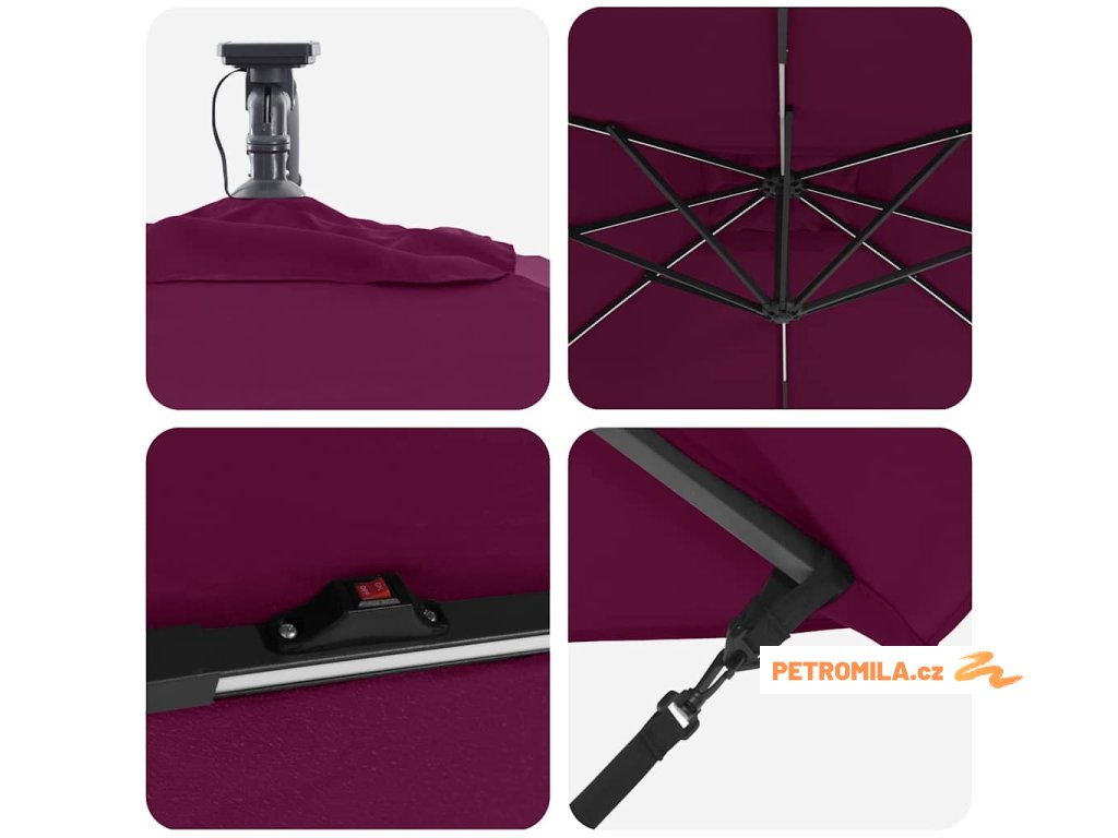 Stojanový banánový slunečník Vínová 249 x 249 x 250 cm