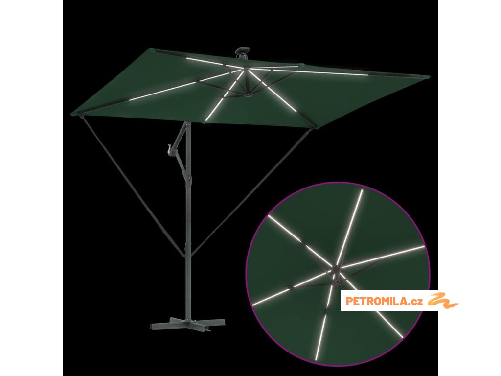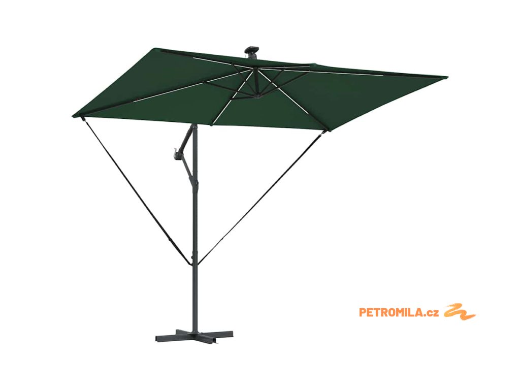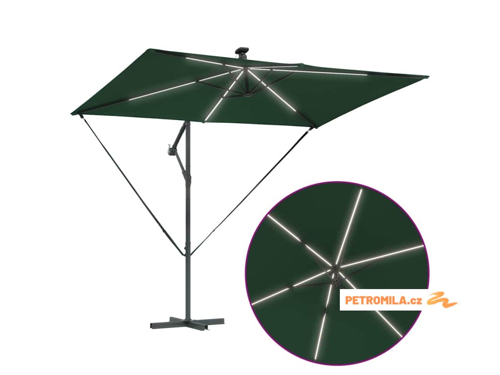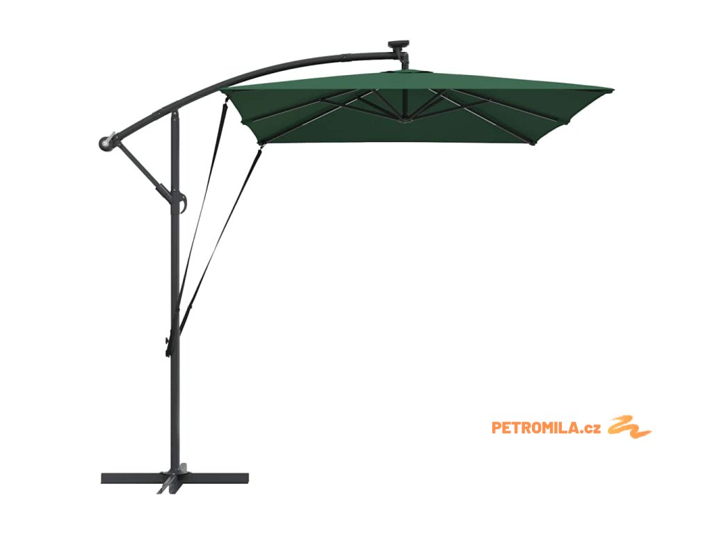 - Solární LED osvětlení: Navržen pro večerní zábavu, tento deštník zahrnuje jasné, ekologické LED osvětlení napájené solární energií. Ať už pořádáte zahradní večeři nebo noční povídání, útulná atmosféra, kterou vytváří, obohacuje jakýkoliv zážitek pod širým nebem během noci.