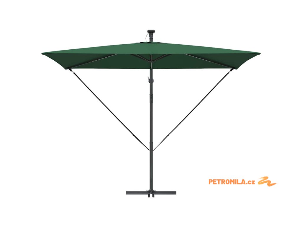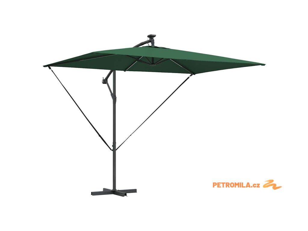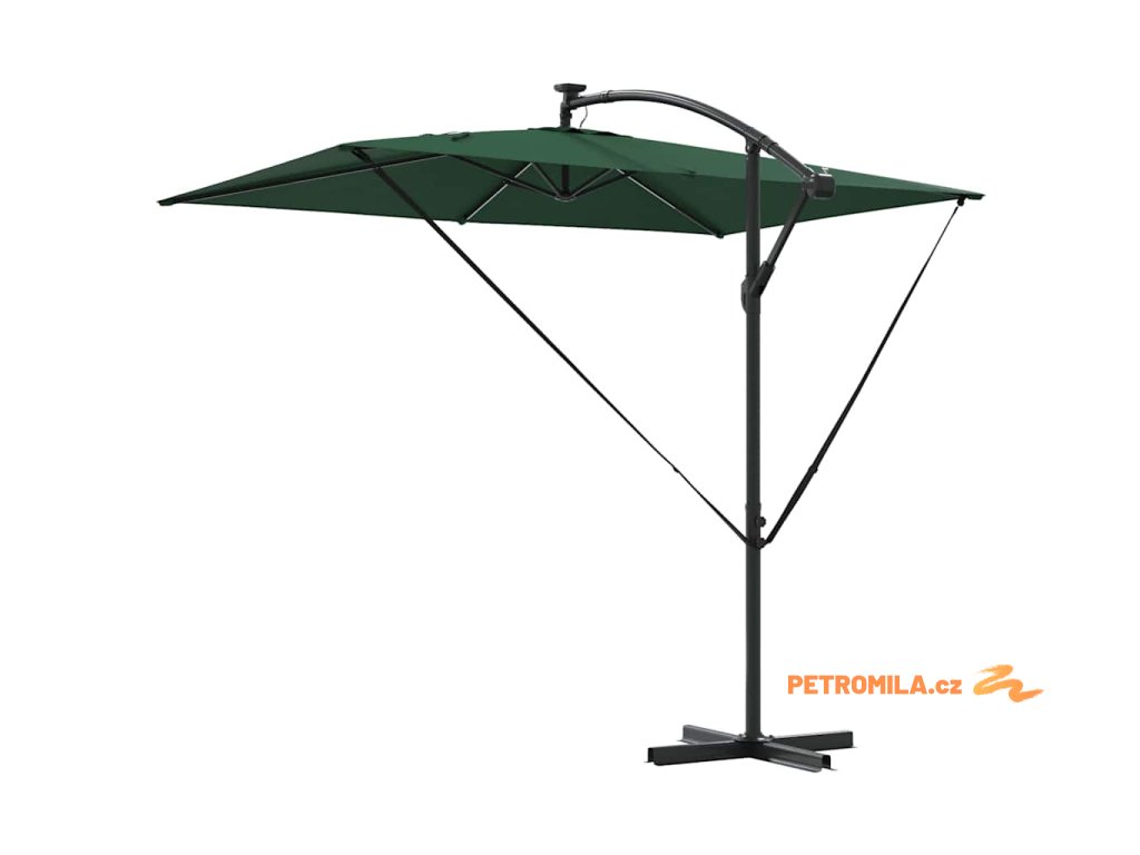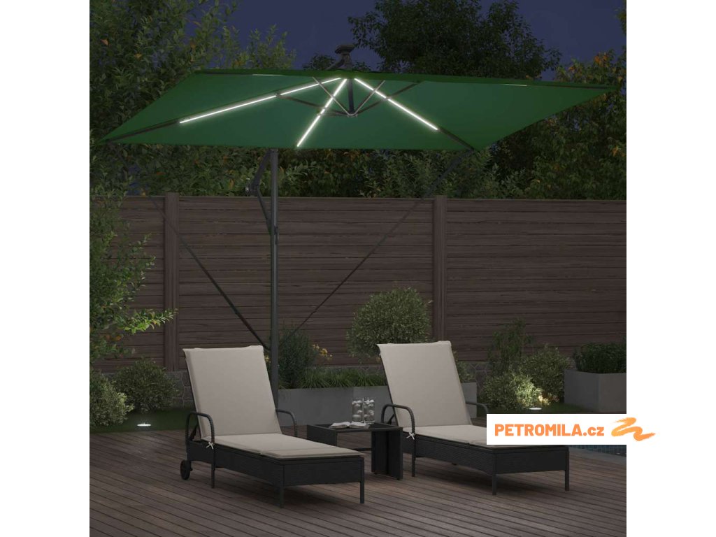 - Solární LED osvětlení: Navržen pro večerní zábavu, tento deštník zahrnuje jasné, ekologické LED osvětlení napájené solární energií. Ať už pořádáte zahradní večeři nebo noční povídání, útulná atmosféra, kterou vytváří, obohacuje jakýkoliv zážitek pod širým nebem během noci.