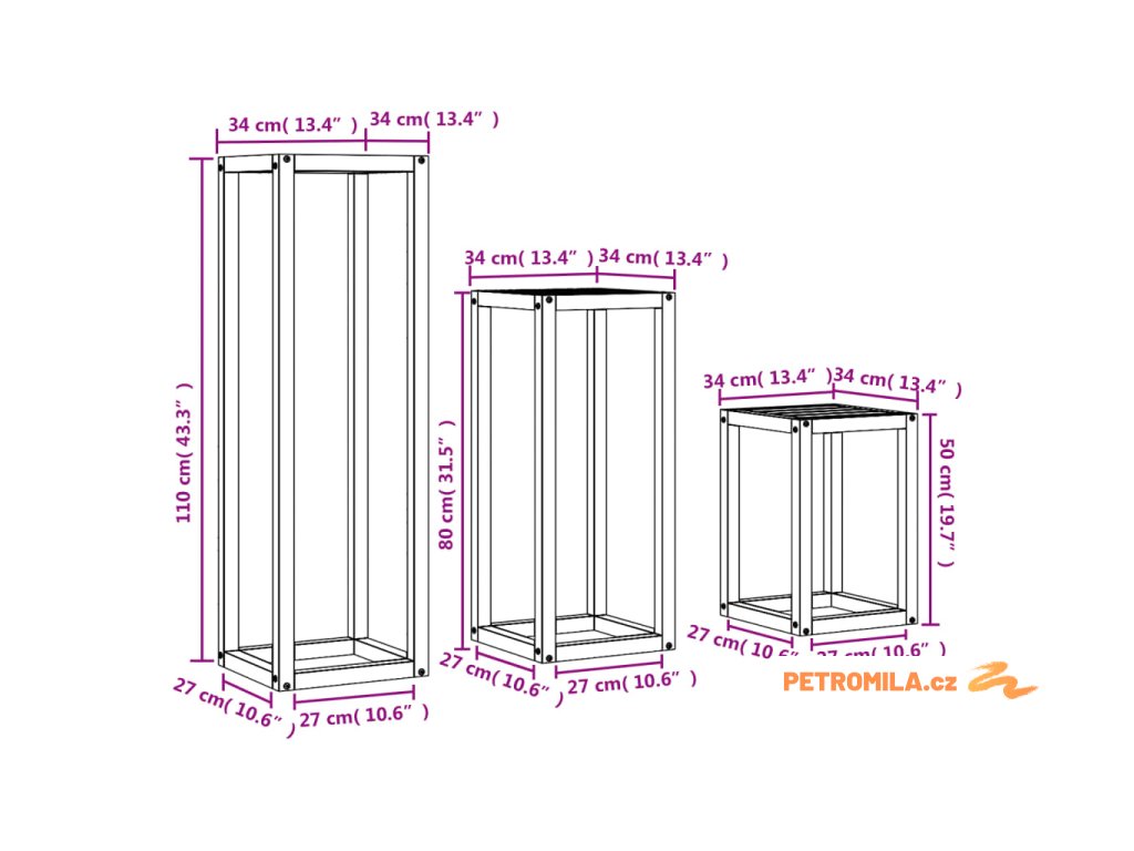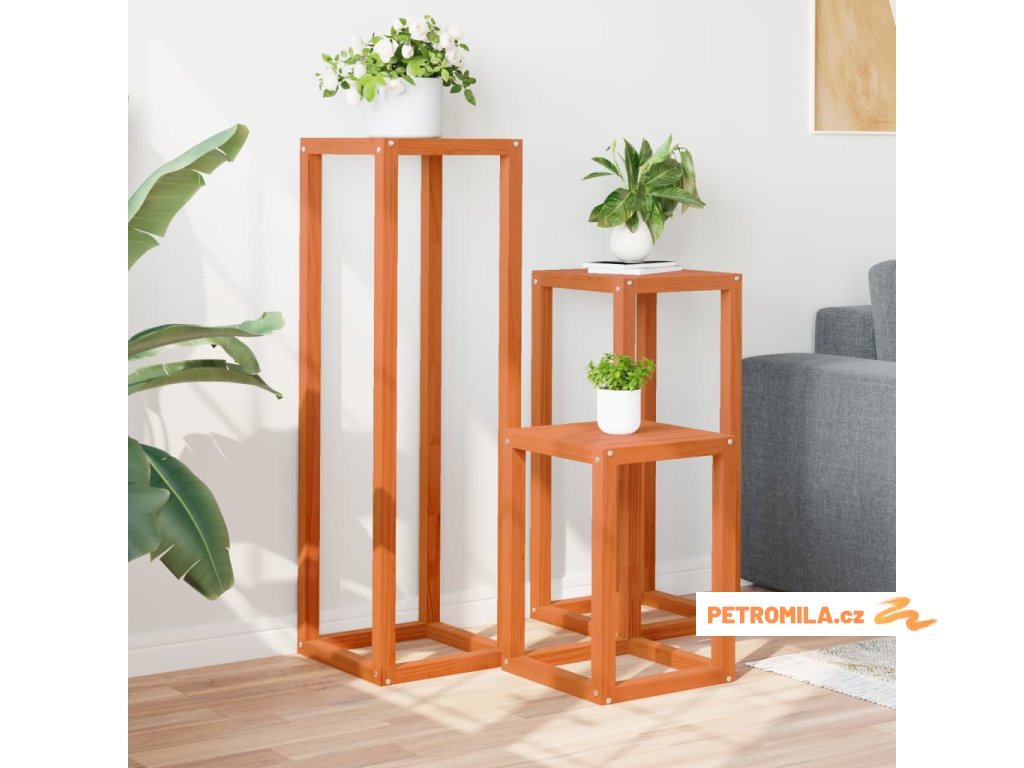 Stojany na rostliny 3 ks voskově hnědé masivní borovice