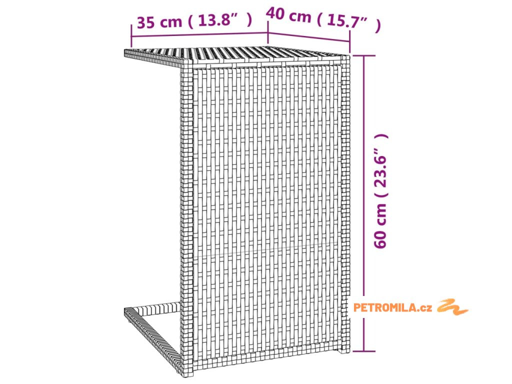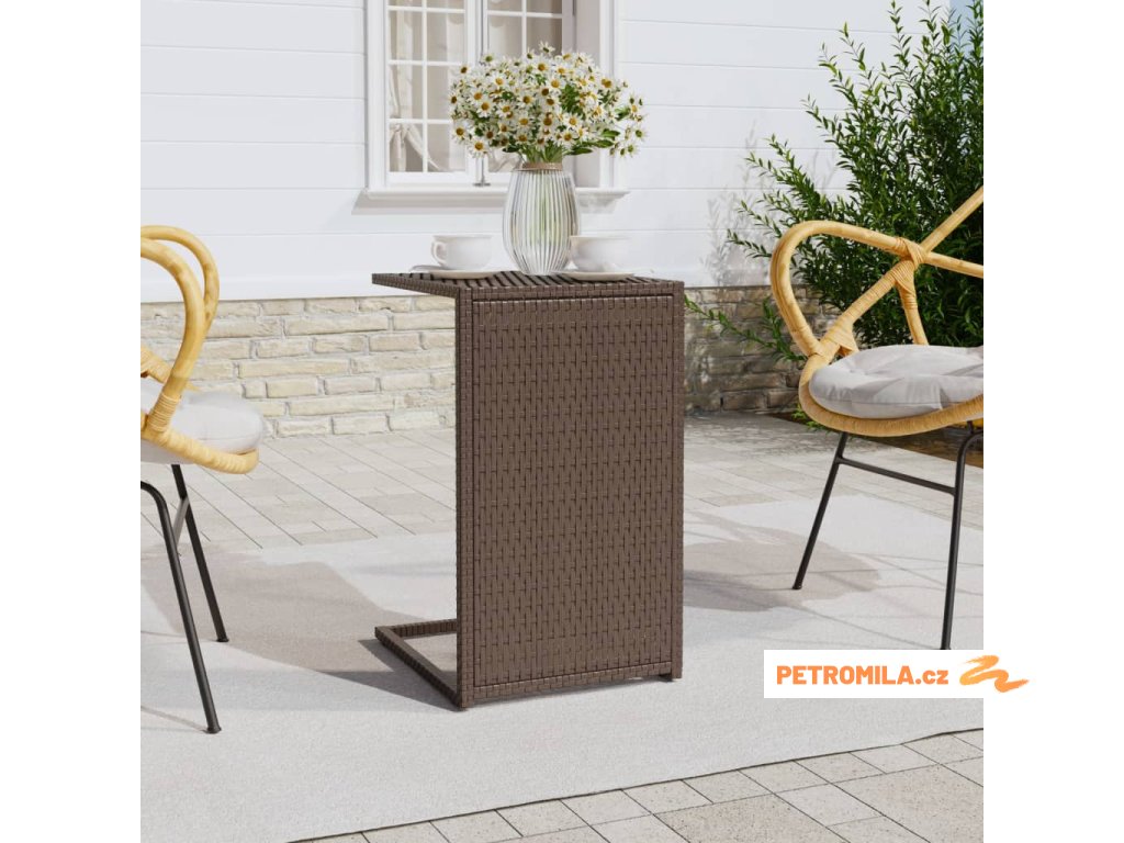 Stolek ve tvaru C hnědý 40 x 35 x 60 cm polyratan