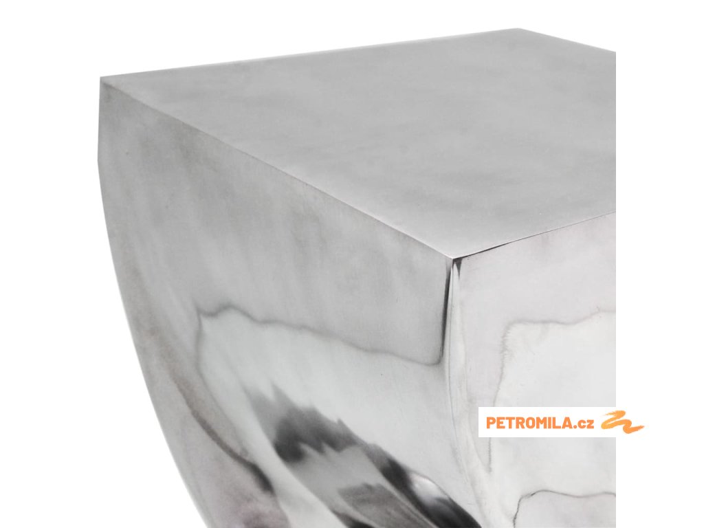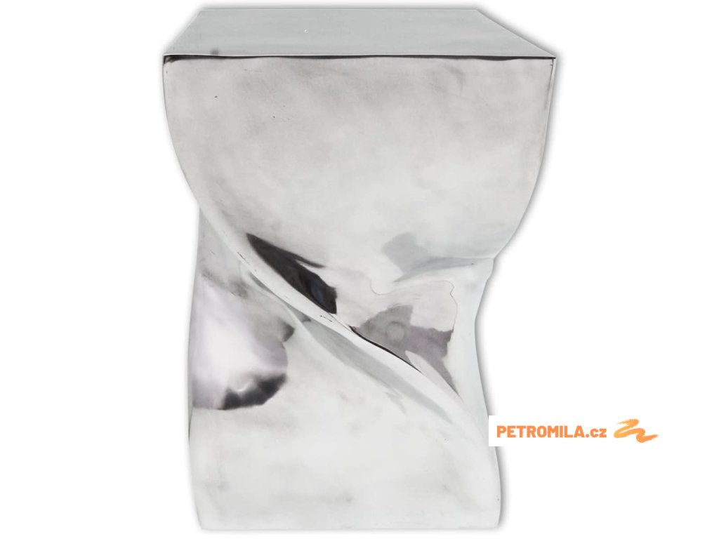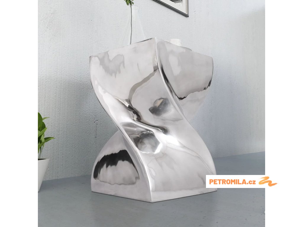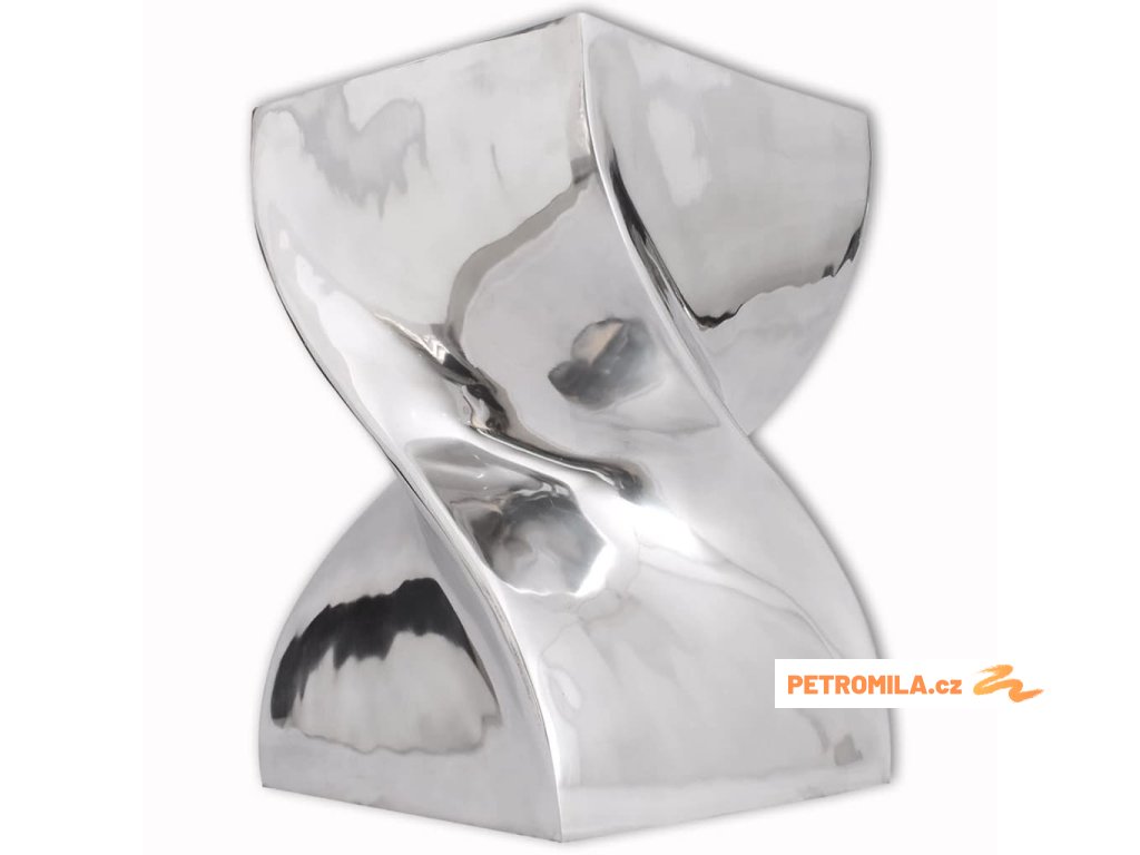 Stolička / odkládací stolek, kroucený tvar, hliníkový stříbrný