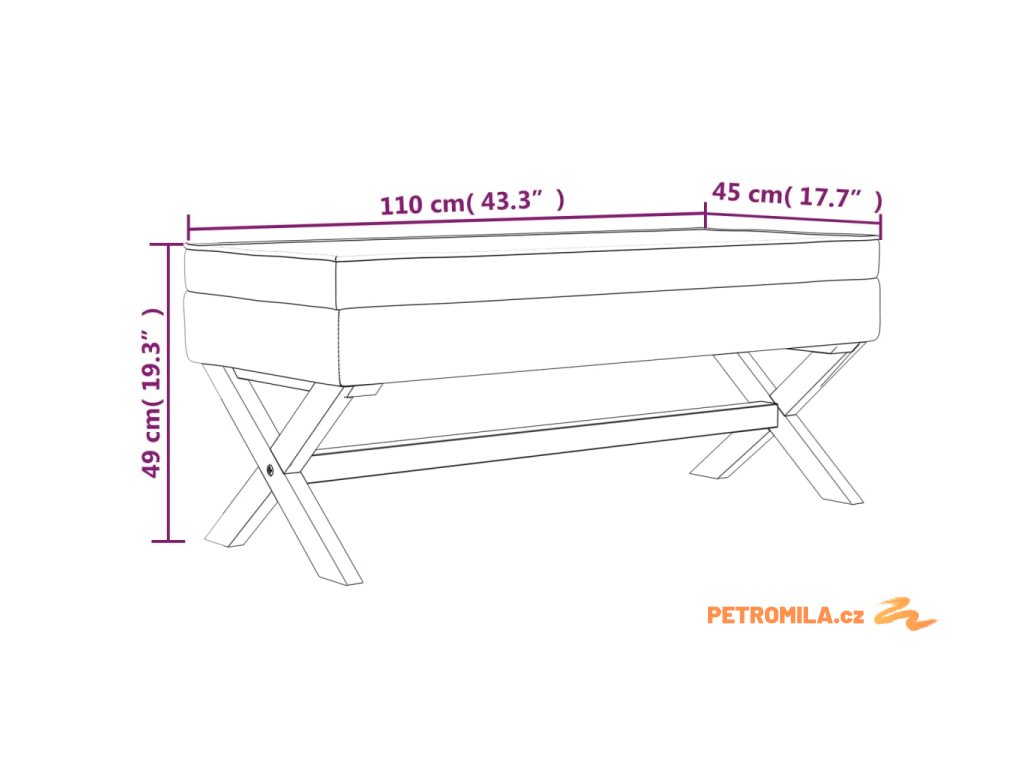 Stolička s úložným prostorem tmavě šedá 110x45x49 cm samet