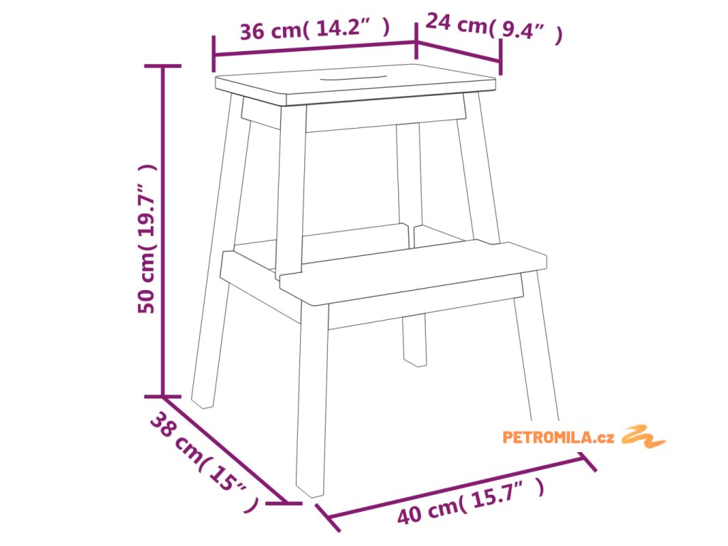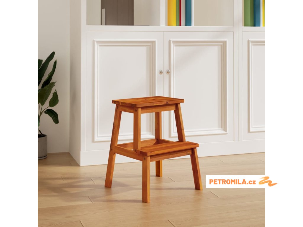 Stolička se 2 stupni 40 x 38 x 50 cm masivní akáciové dřevo
