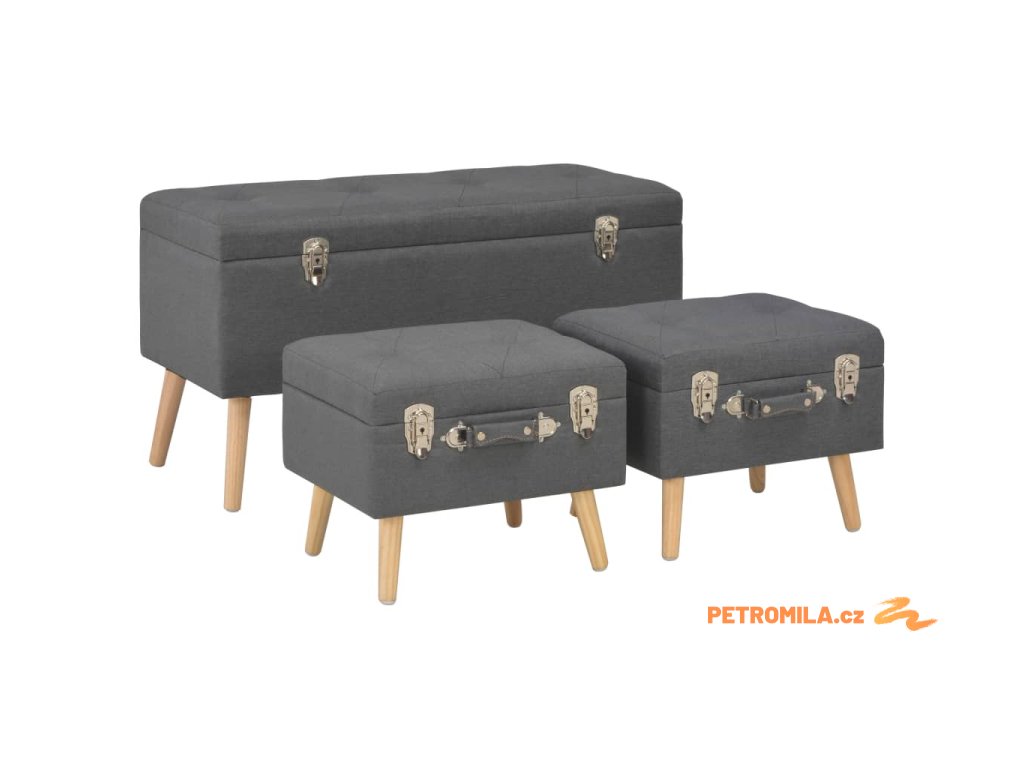 Stoličky s úložným prostorem 3 ks tmavě šedé textil