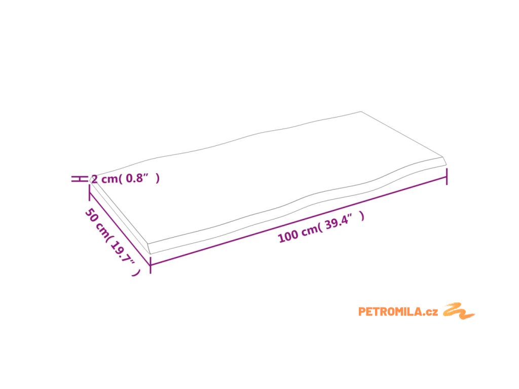 Stolní deska 100 x 50 x 2 cm neošetřený masivní dub živá hrana