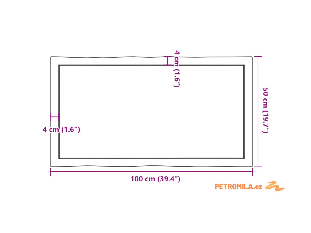 Stolní deska 100x50x(2-6)cm neošetřený masivní dřevo živá hrana