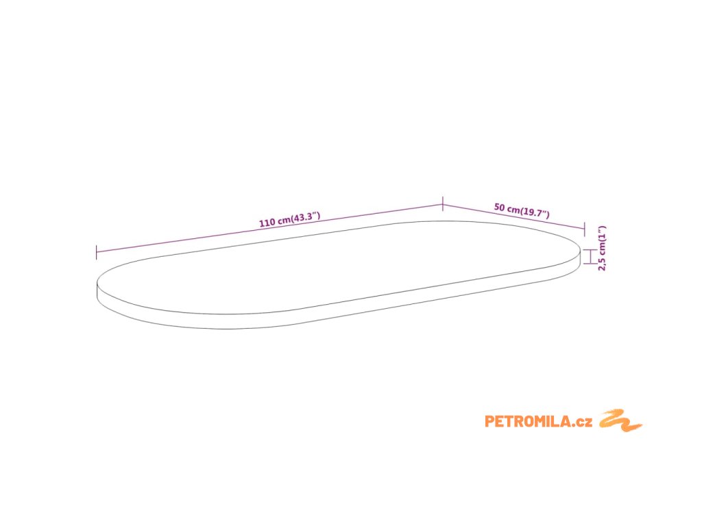 Stolní deska 110 x 50 x 2,5 cm oválná masivní akáciové dřevo