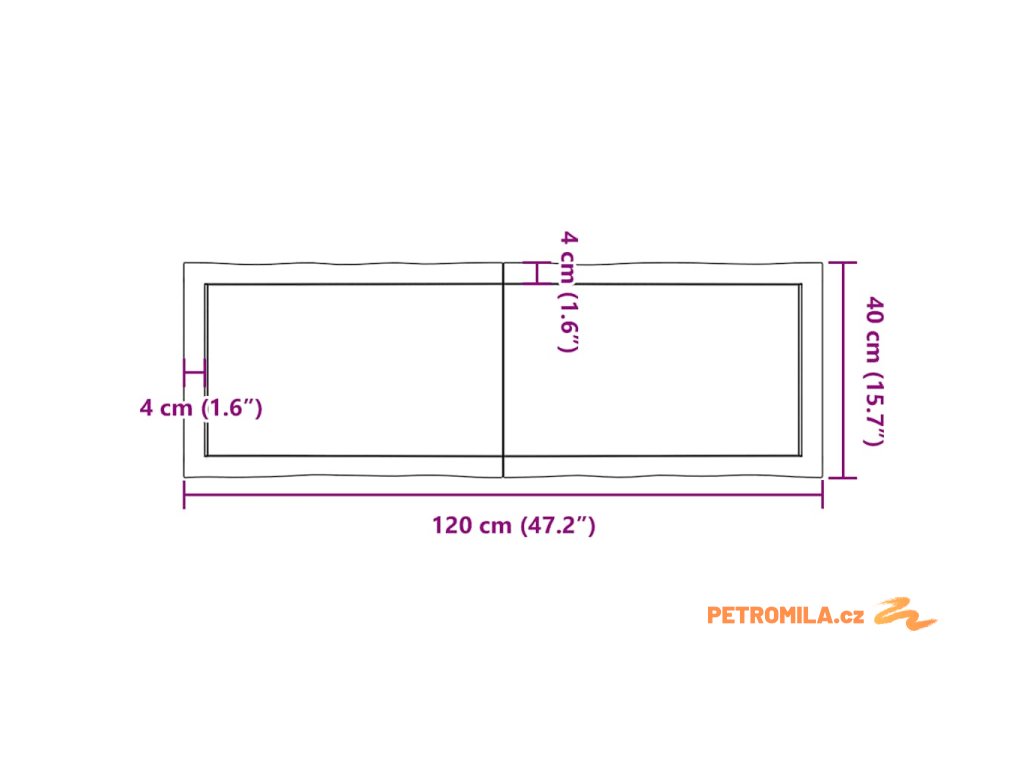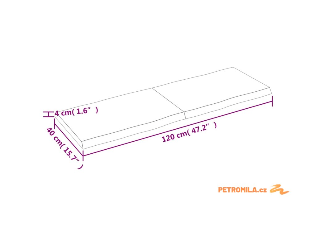 Stolní deska 120x40x(2-4)cm neošetřený masivní dřevo živá hrana