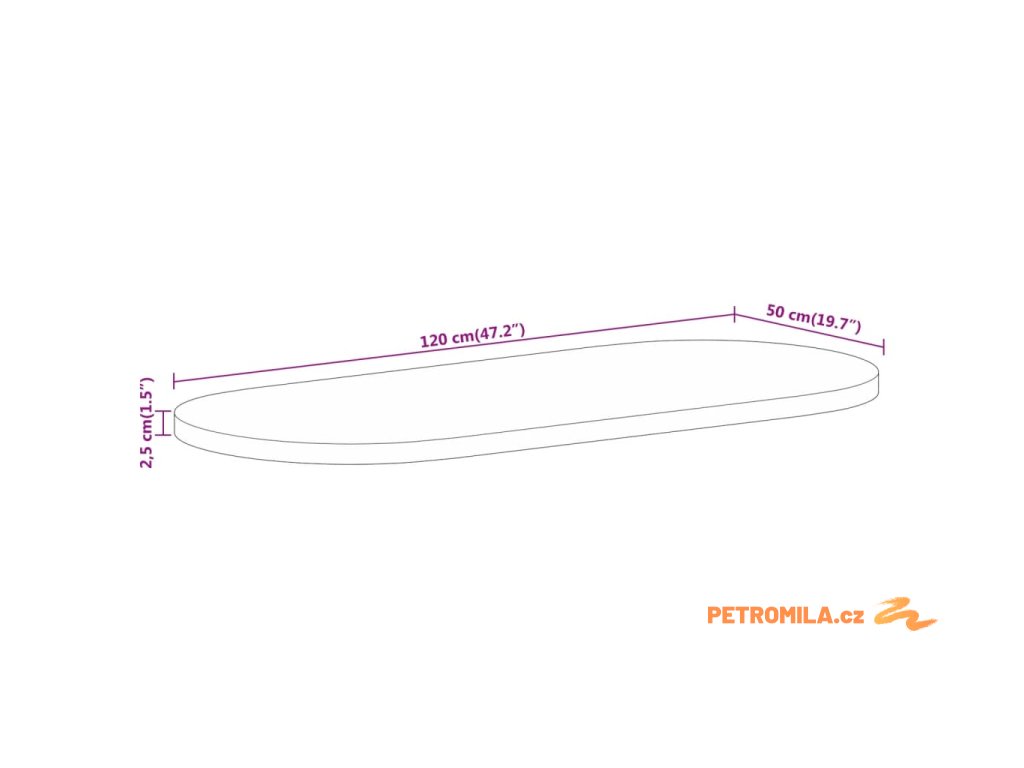 Stolní deska 120x50x2,5 cm oválná masivní mangovníkové dřevo