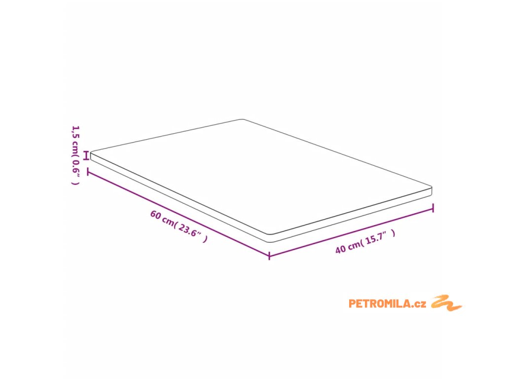 - Rozměry: 40 x 60 x 1,5 cm (D x Š x T)