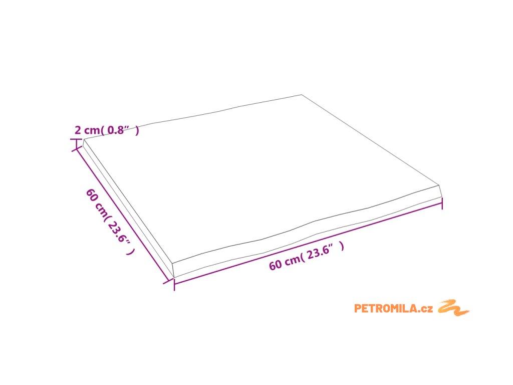 Stolní deska 60 x 60 x 2 cm neošetřený masivní dub živá hrana