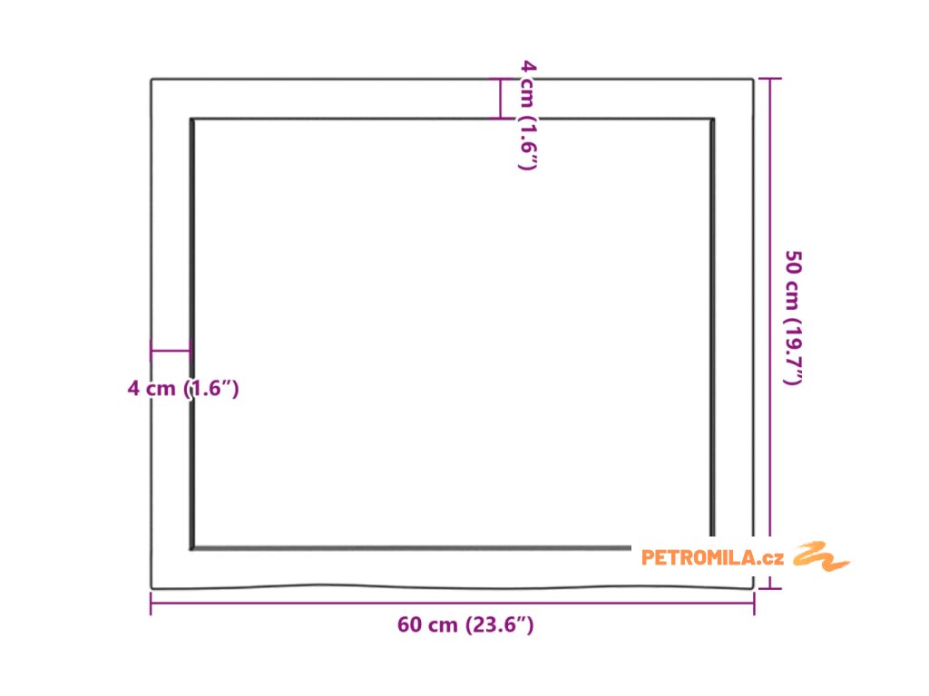 Stolní deska 60x50x(2-4) cm neošetřený masivní dubové dřevo