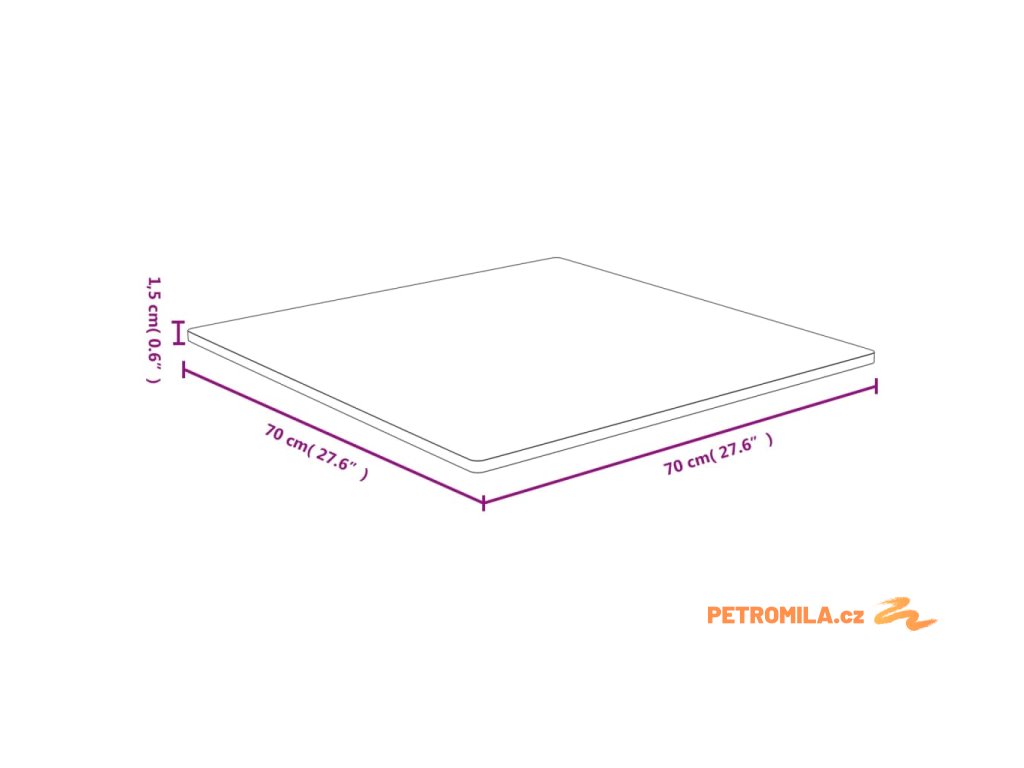 - Rozměry: 70 x 70 x 1,5 cm (D x Š x T)