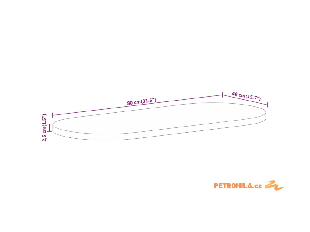 Stolní deska 80 x 40 x 2,5 cm oválná masivní mangovníkové dřevo