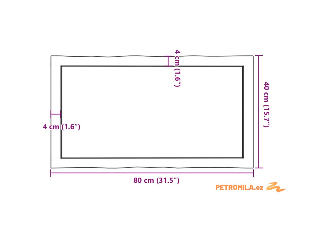 Stolní deska 80x40x(2-4) cm neošetřený masivní dřevo živá hrana