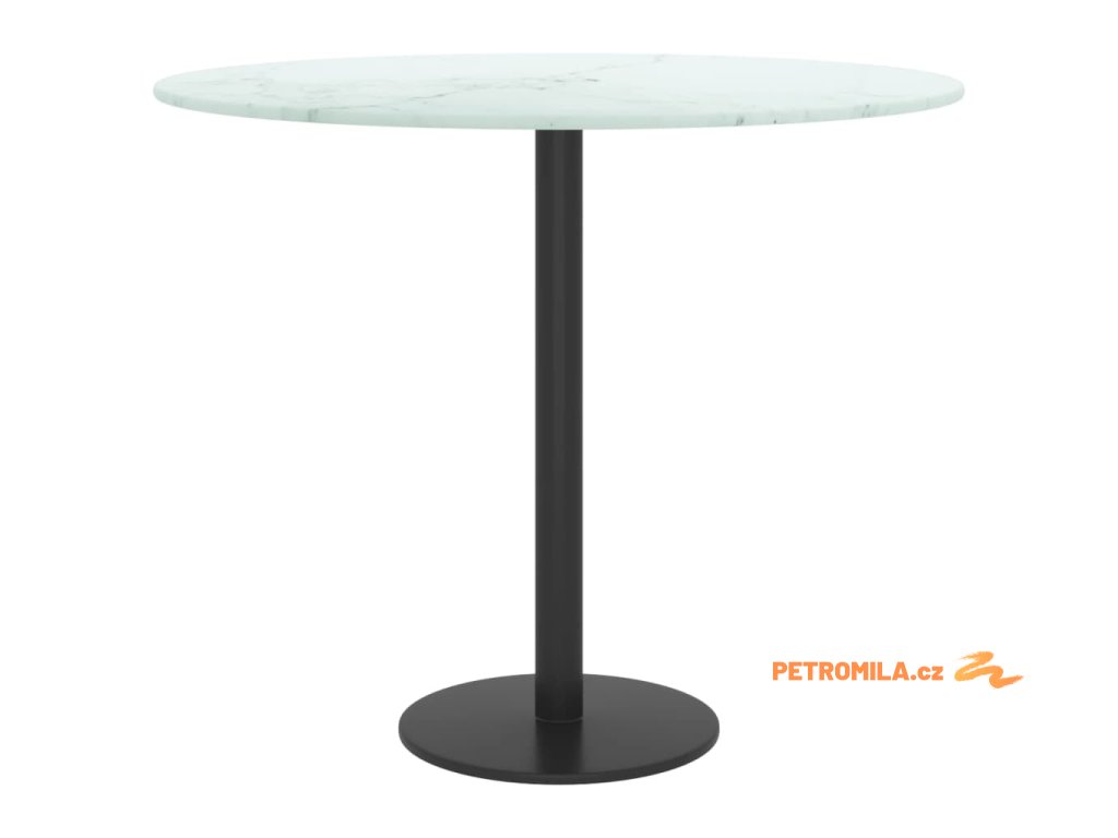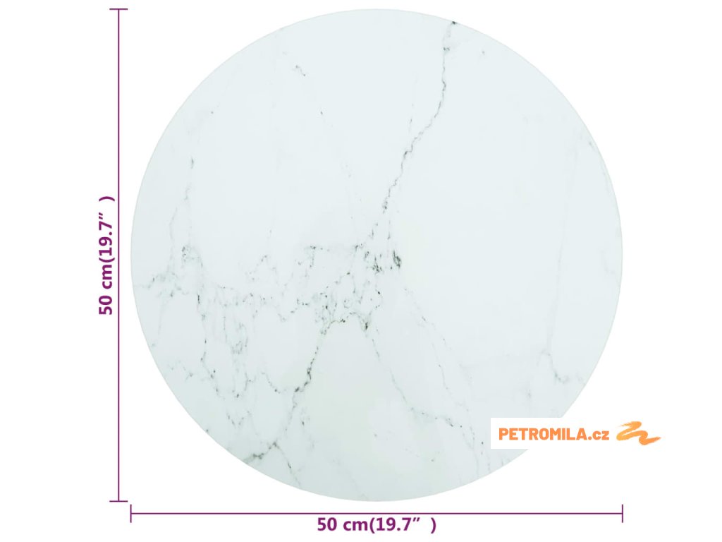 Stolní deska bílá Ø 50 x 0,8 cm tvrzené sklo mramorový design