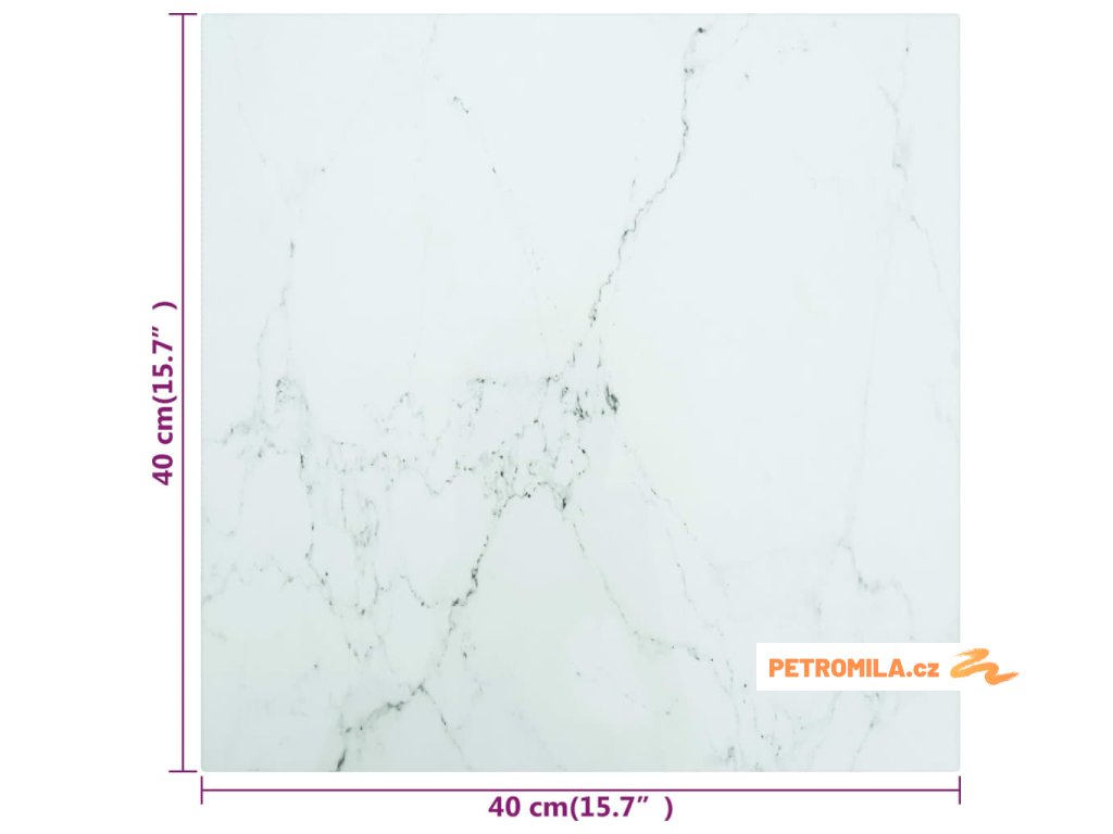 Stolní deska bílá 40 x 40 cm 6 mm tvrzené sklo mramorový design