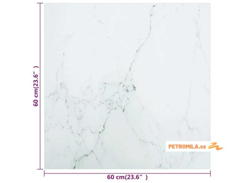Stolní deska bílá 60 x 60 cm 6 mm tvrzené sklo mramorový design