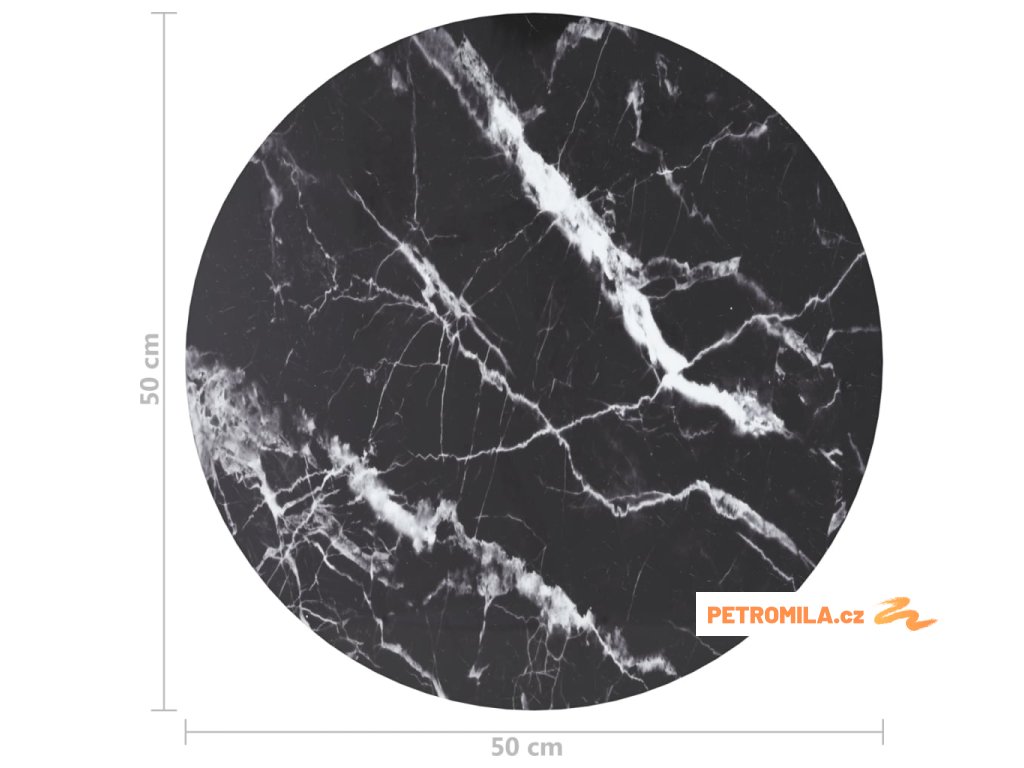 Stolní deska černá Ø 50 x 0,8 cm tvrzené sklo mramorový design