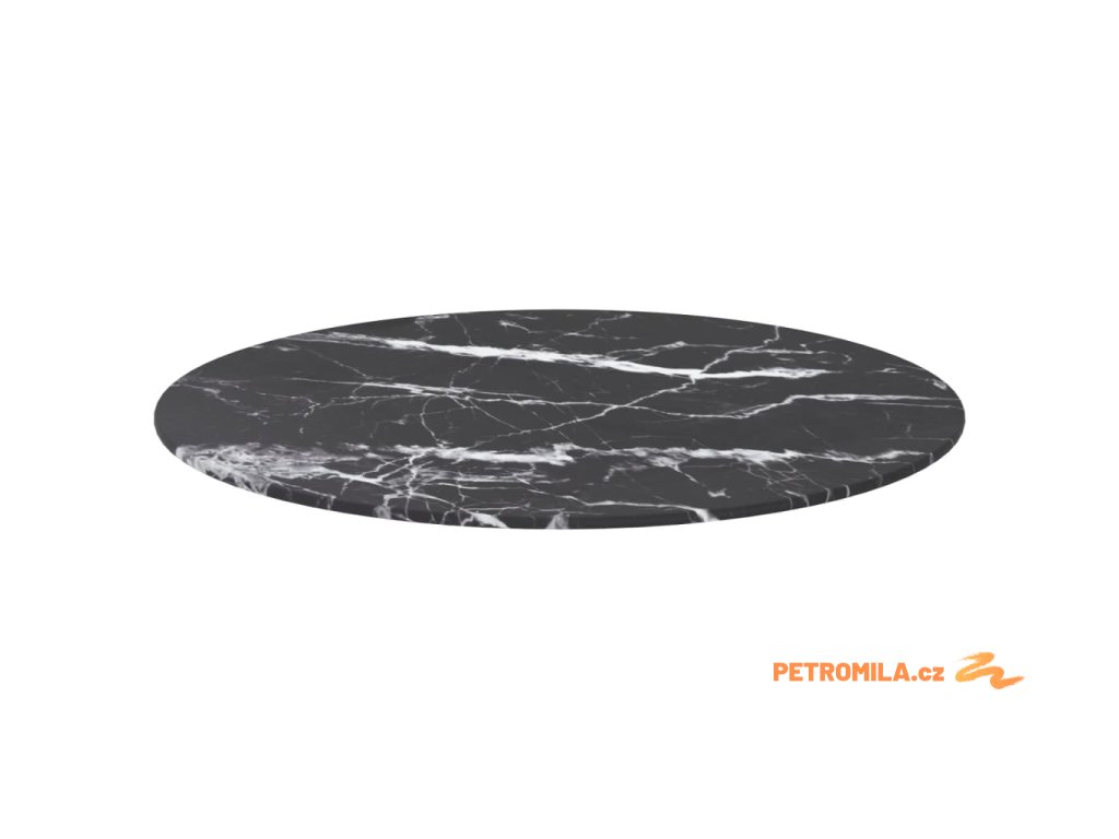 Stolní deska černá Ø 60 x 0,8 cm tvrzené sklo mramorový design