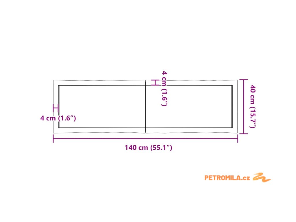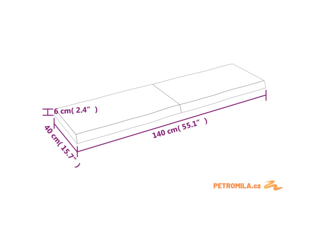 - Celkové rozměry: 140 x 40 x (2–6) cm (D x Š x T)