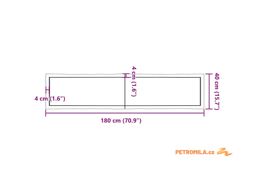 Stolní deska hnědá 180x40x(2-6)cm ošetřený dřevo živá hrana