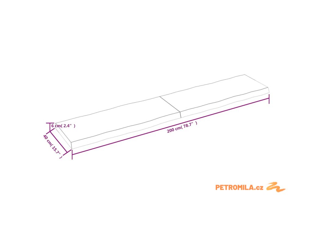 Stolní deska hnědá 200x40x(2-6)cm ošetřený dřevo živá hrana