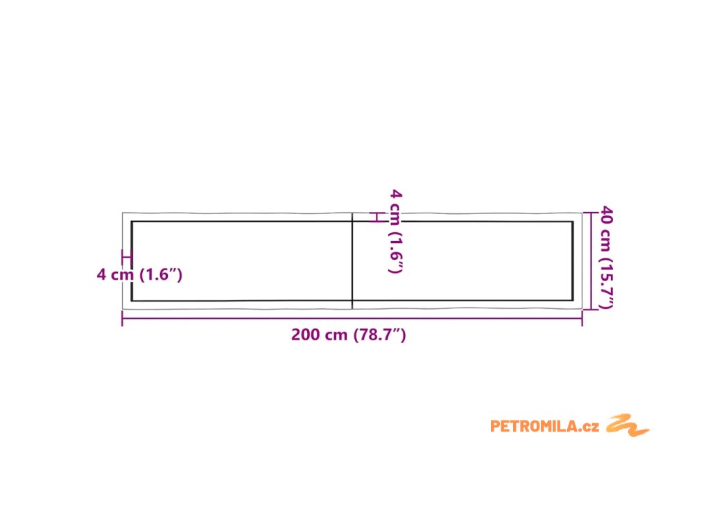 - Celkové rozměry: 200 x 40 x (2–6) cm (D x Š x T)