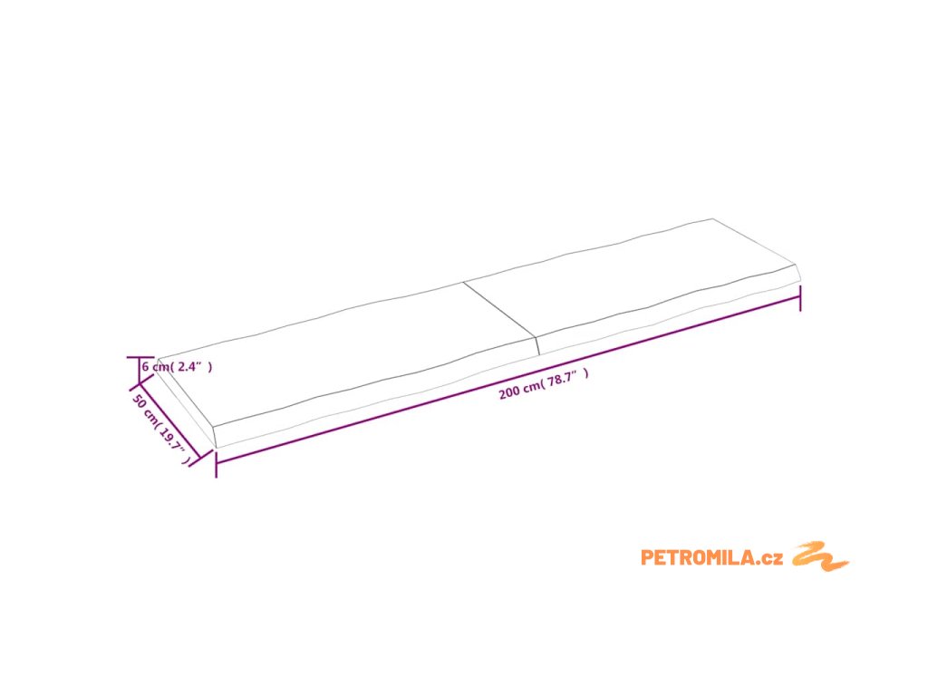 Stolní deska hnědá 200x50x(2-6)cm ošetřený dřevo živá hrana