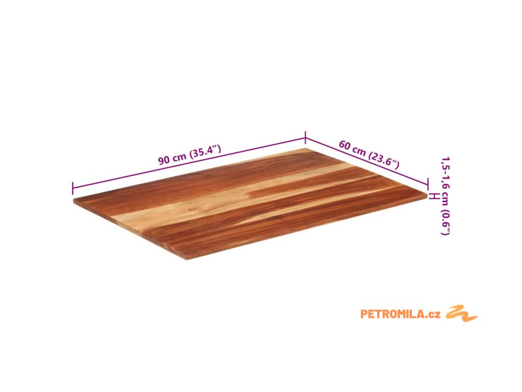 Stolní deska masivní akáciové dřevo 15–16 mm 60 x 90 cm
