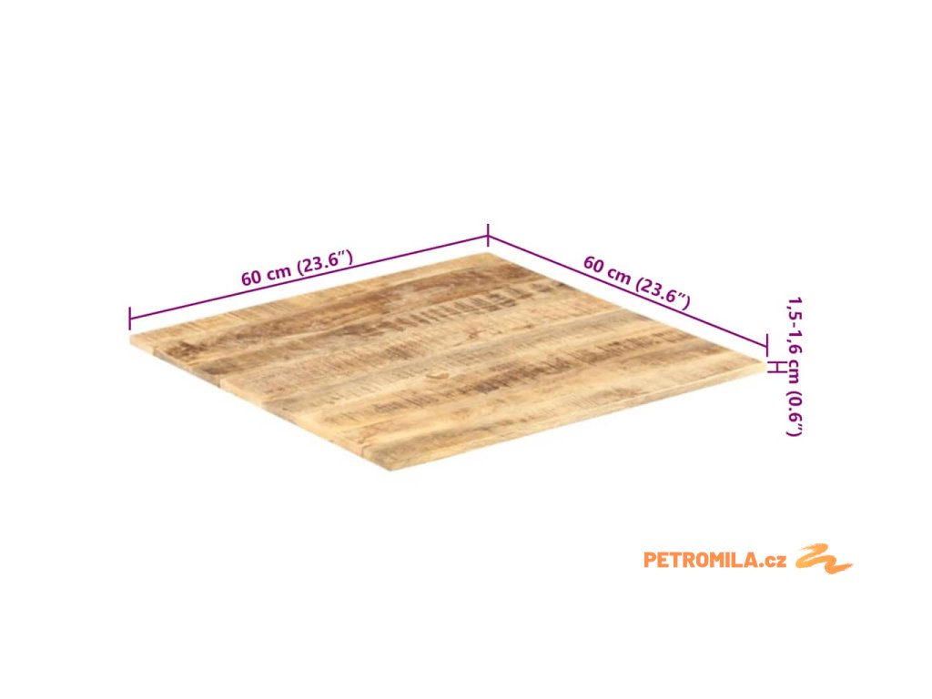 Stolní deska masivní mangovníkové dřevo 15–16 mm 60 x 60 cm