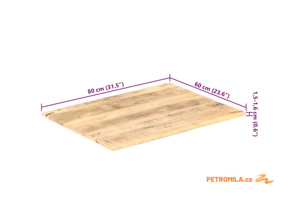 Stolní deska masivní mangovníkové dřevo 15–16 mm 80 x 60 cm