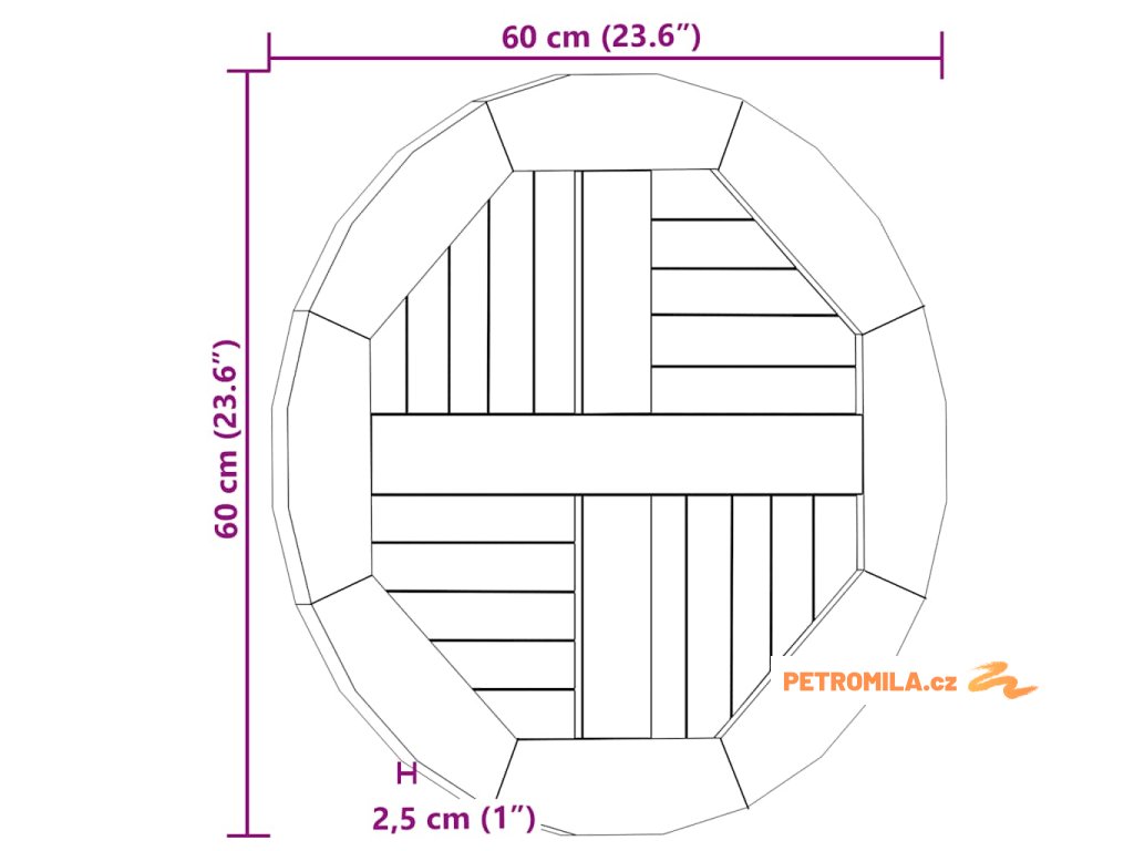 Stolní deska masivní teakové dřevo kulatá 2,5 cm 60 cm