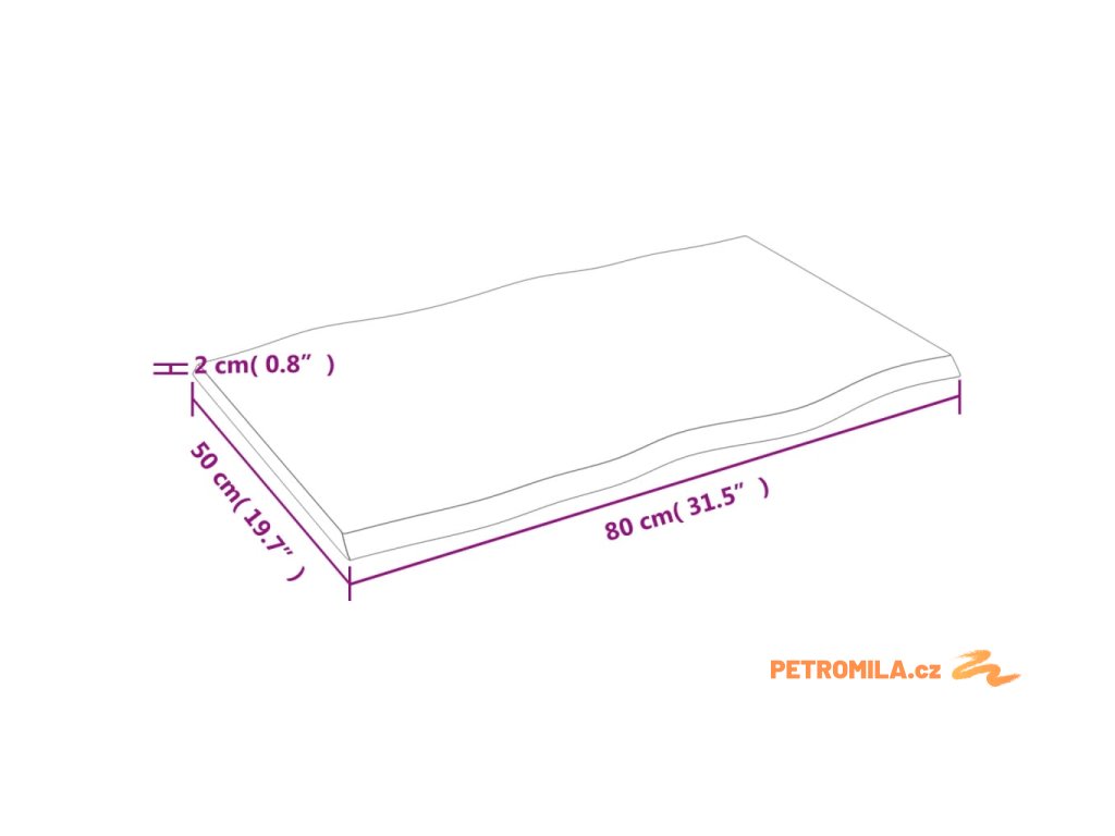 Stolní deska světle hnědá 80x50x2 cm ošetřený dub živá hrana
