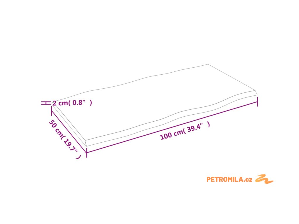 Stolní deska tmavě hnědá 100 x 50 x 2cm ošetřený dub živá hrana