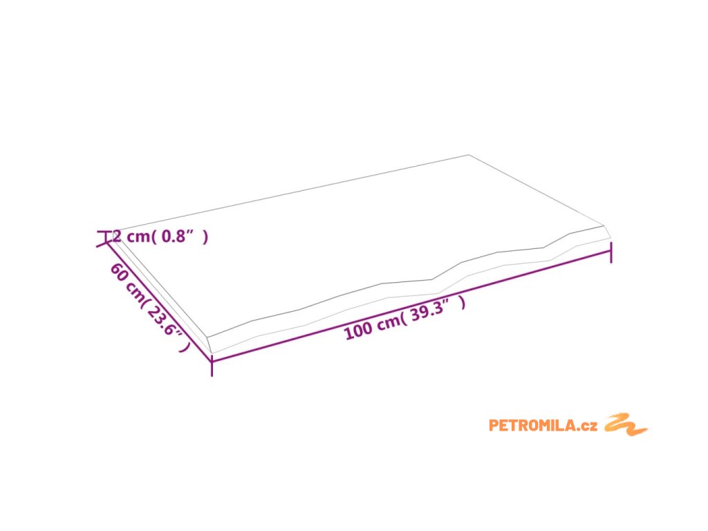 Stolní deska tmavě hnědá 100 x 60 x 2 cm ošetřený masivní dub