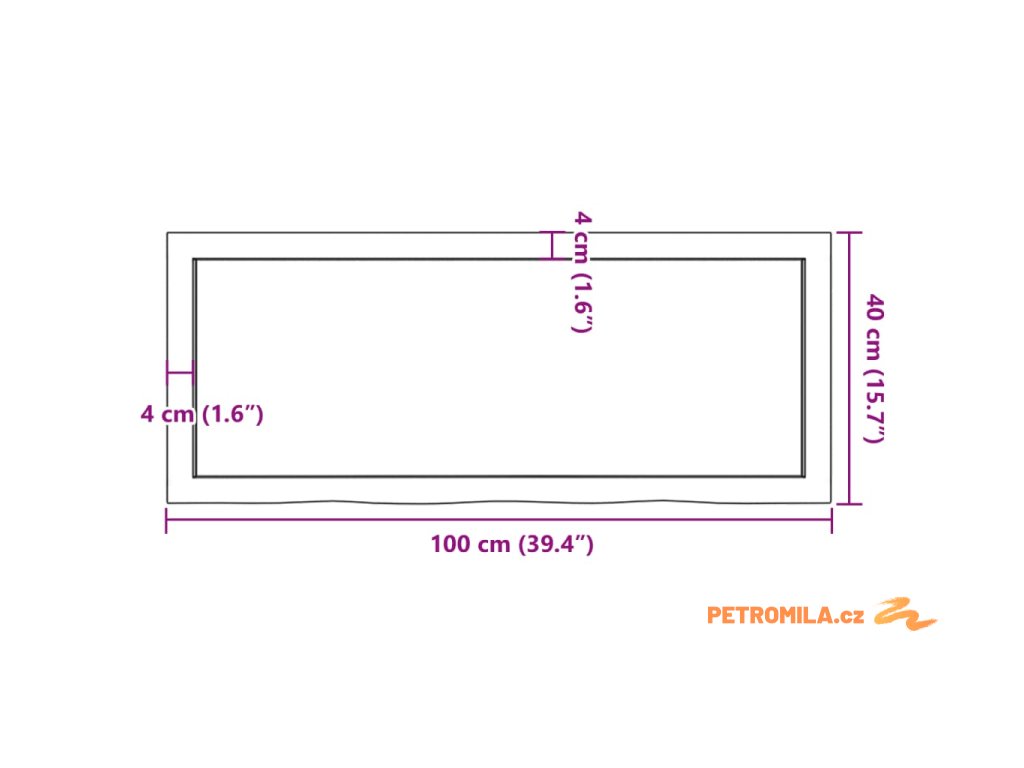 Stolní deska tmavě hnědá 100x40x(2-6)cm ošetřený masivní dub