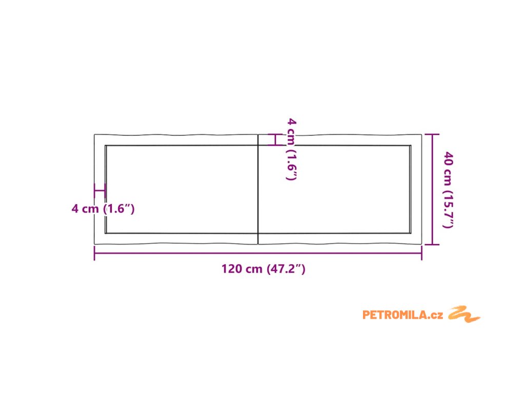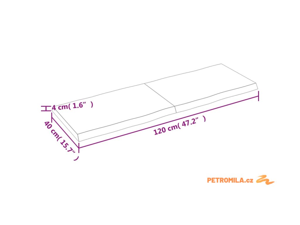 Stolní deska tmavě hnědá 120x40x(2-4)cm ošetřený dub živá hrana
