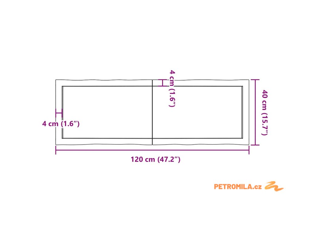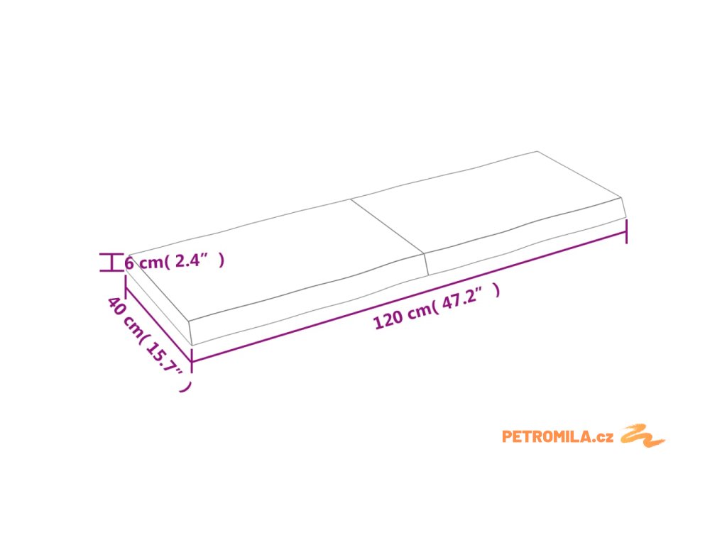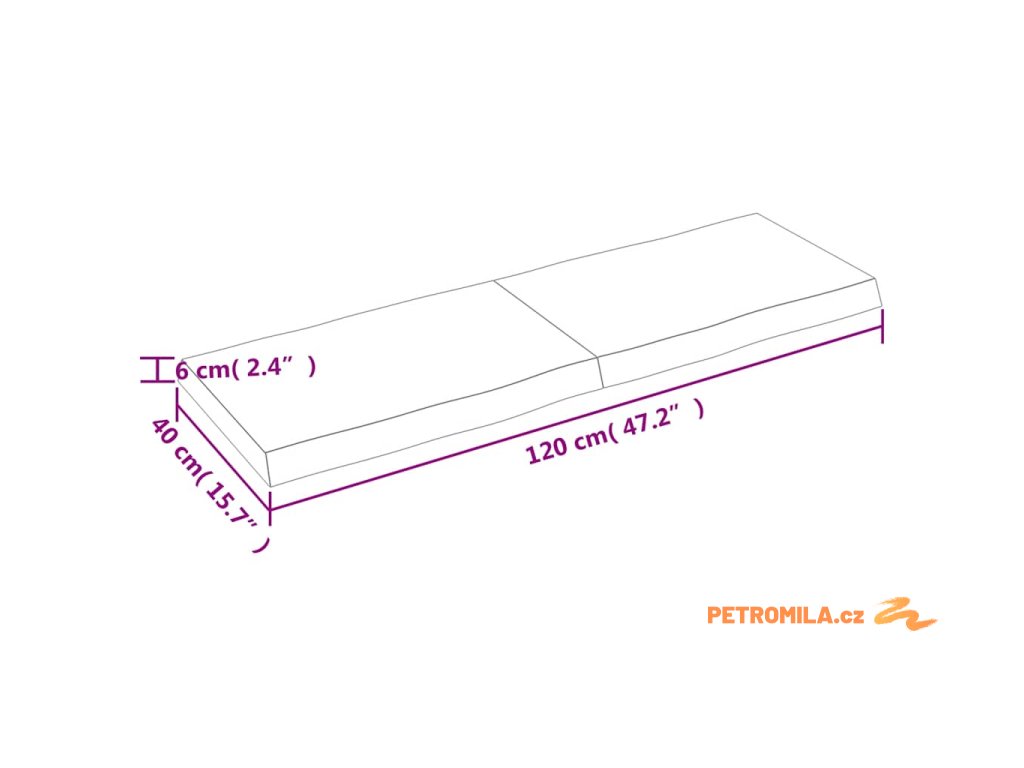 Stolní deska tmavě hnědá 120x40x(2-6)cm ošetřený dub živá hrana