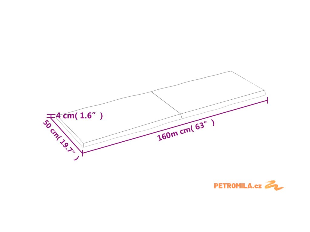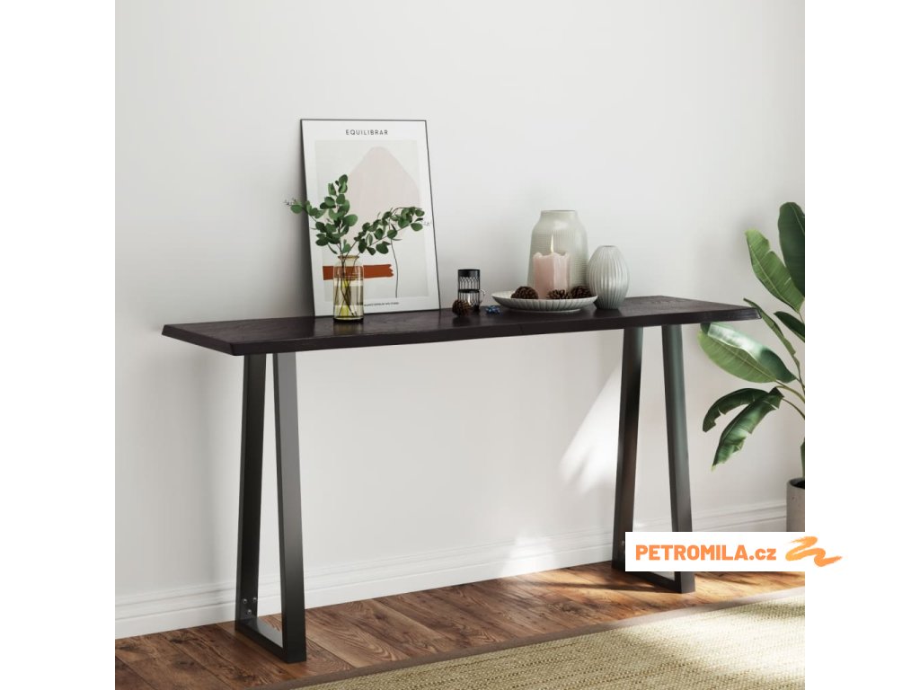 Stolní deska tmavě hnědá 160x50x(2-4)cm ošetřený dub živá hrana