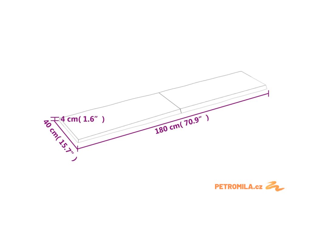 Stolní deska tmavě hnědá 180x40x(2-4)cm ošetřený dub živá hrana