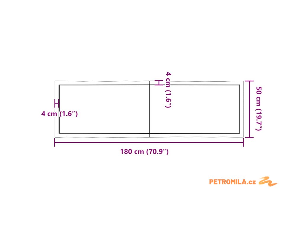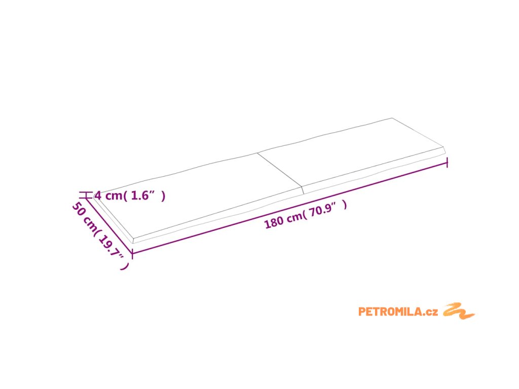 Stolní deska tmavě hnědá 180x50x(2-4)cm ošetřený dub živá hrana