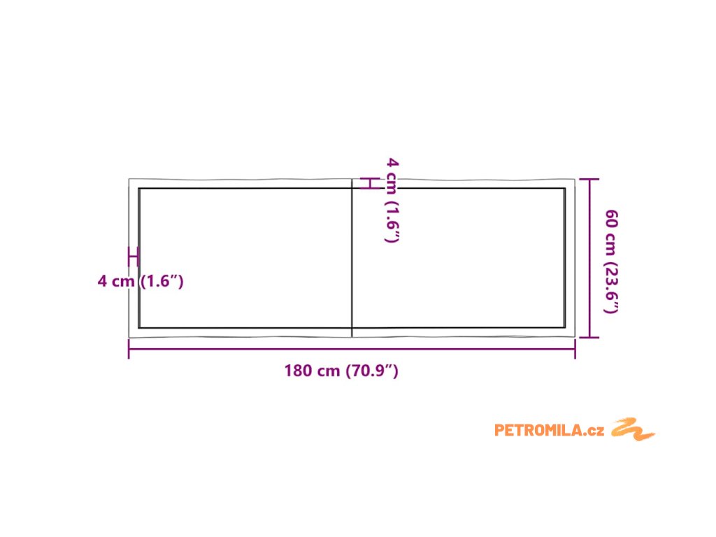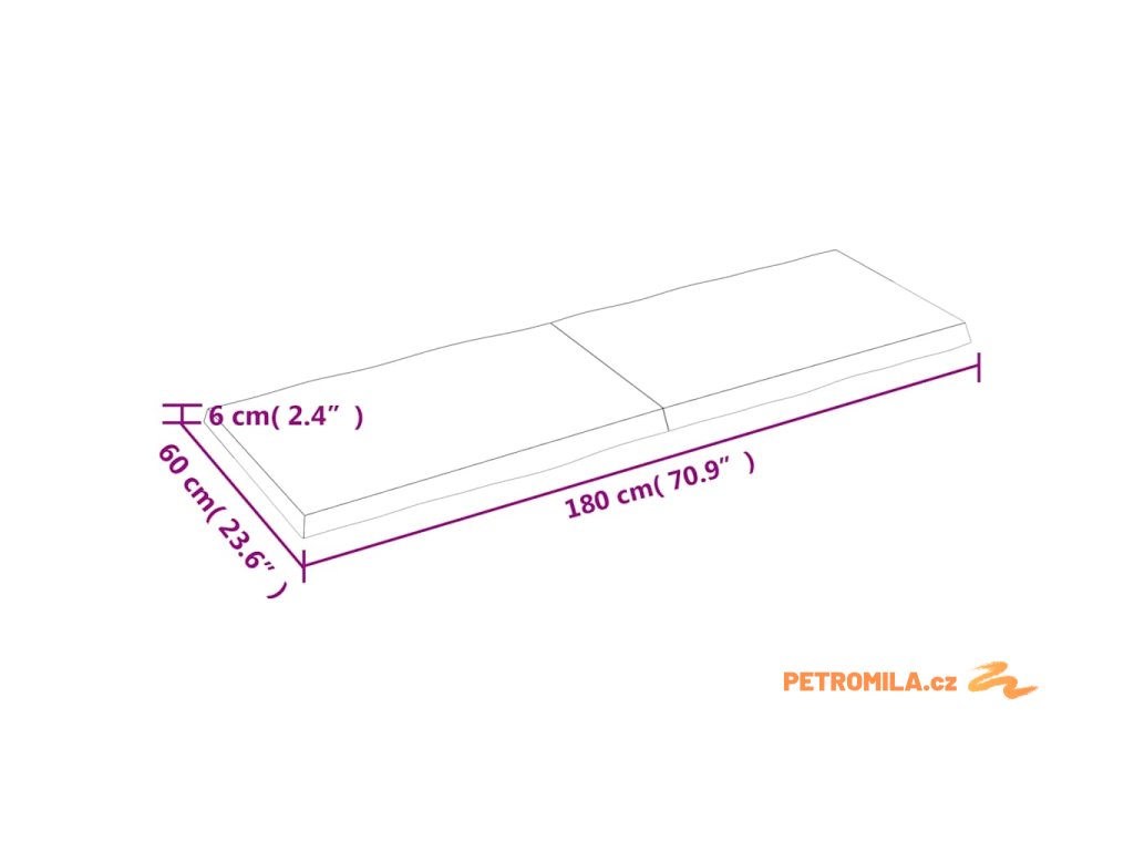 Stolní deska tmavě hnědá 180x60x(2-6)cm ošetřený dub živá hrana