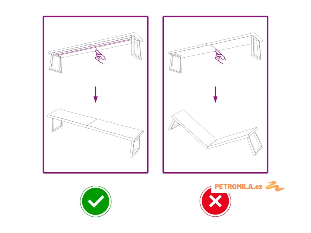- Celkové rozměry: 200 x 40 x (2–6) cm (D x Š x T)